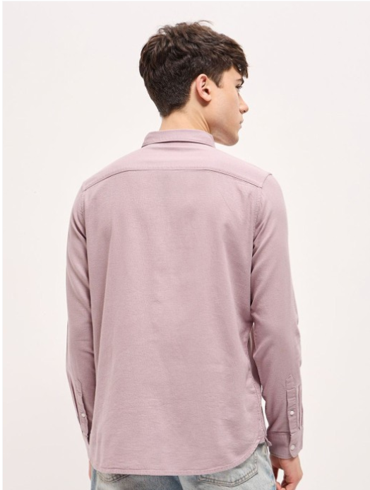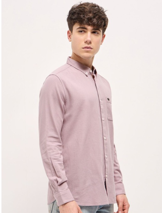 Men Button-Down Collar Solid Slim Fit Cotton Shirt