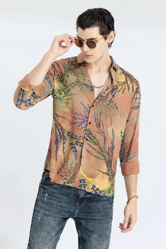 Men Slim Fit Printed Slim Collar Casual Shirt