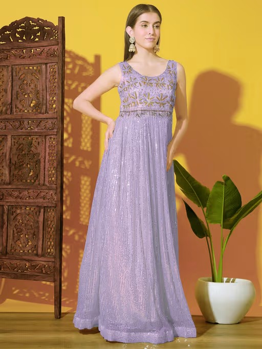 Chhabra 555 Mermaid Sequin Embellished Cocktail Gown with Zircon and Zardozi Embroidered Floral Motifs Made To Measure. Margin Is Also Left In The Garment for Further Alteration If Required. Dupatta Length Is 2.0 Mtr and Width Is 0.55 Mtr.