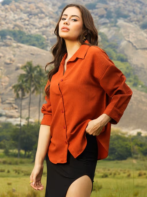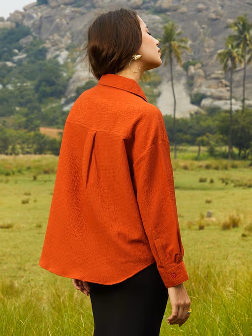 Campus SutraWomen Rust Orange Textured Oversized Shirt