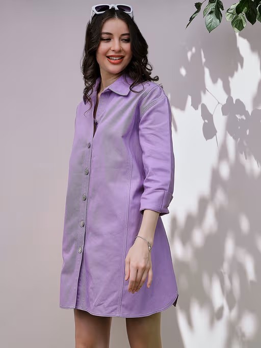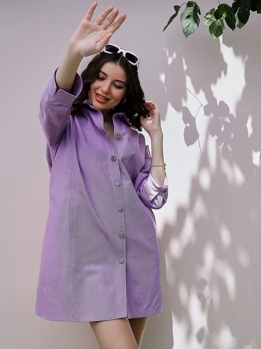 Enhance your style this season with this AAREIN Cuffed Sleeves Oversized Denim Shirt Dress. Crafted from breathable fabric, it features an elegant design and offers exceptional comfort. Pair it with heels and minimal jewelry for a chic appearance.