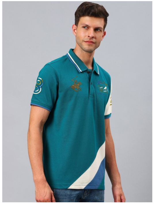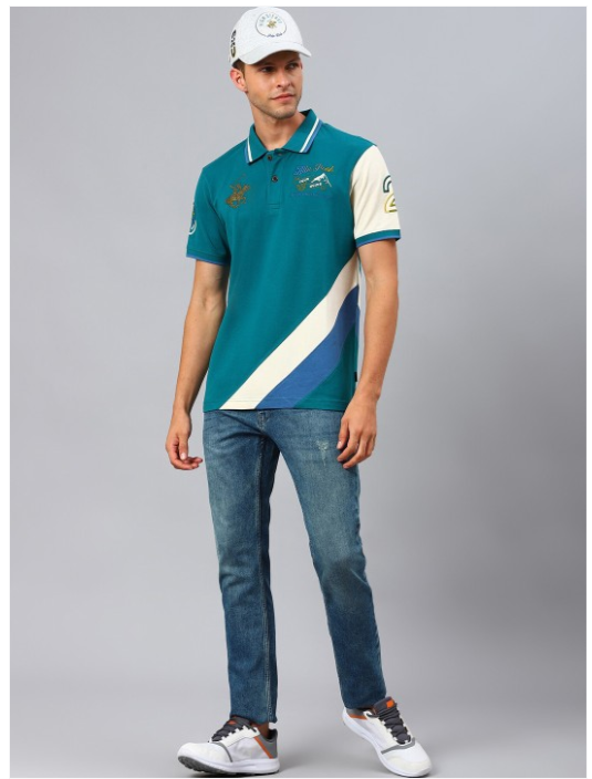 Men Teal Polo Collar T-shirt