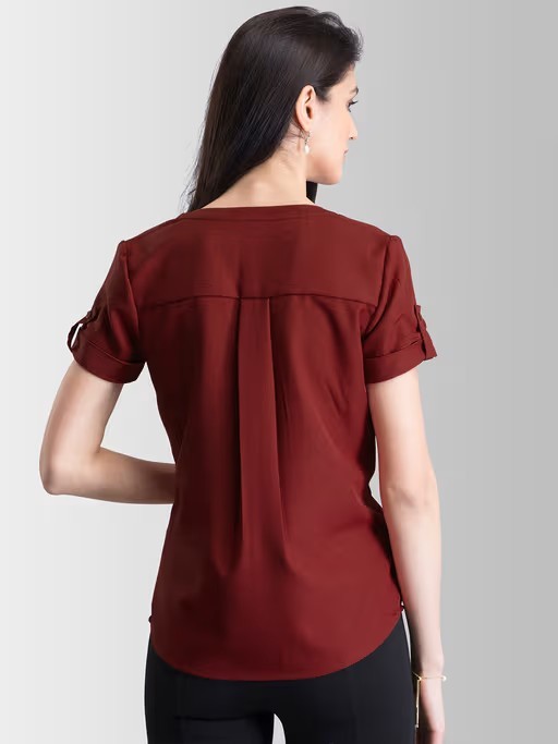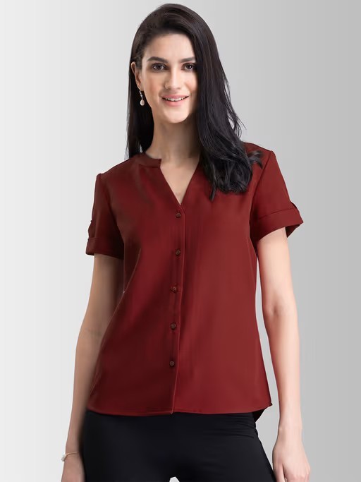 Get hold of a refreshing look by donning this delicate look from FableStreet. This red top has a V neck, anti-gape buttons and short sleeves with faux button details. Designed from polyester moss, it's immensely soft, stretchable, anti-wrinkle and anti-pill. Add some flair to this look with slouchy or mom-fit denim pants and white sneakers.