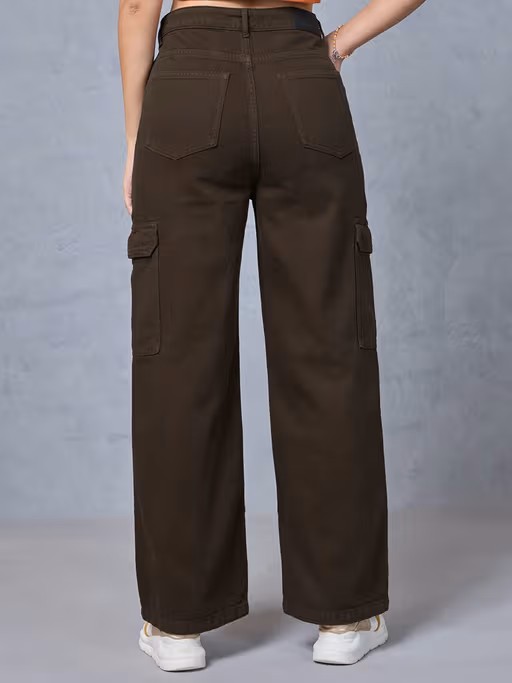 Add a touch of utility-inspired style to your wardrobe with these Women's Brown Straight Fit Cargo Jeans. Pair them with a tucked-in tank top and sandals for a laid-back summer look.