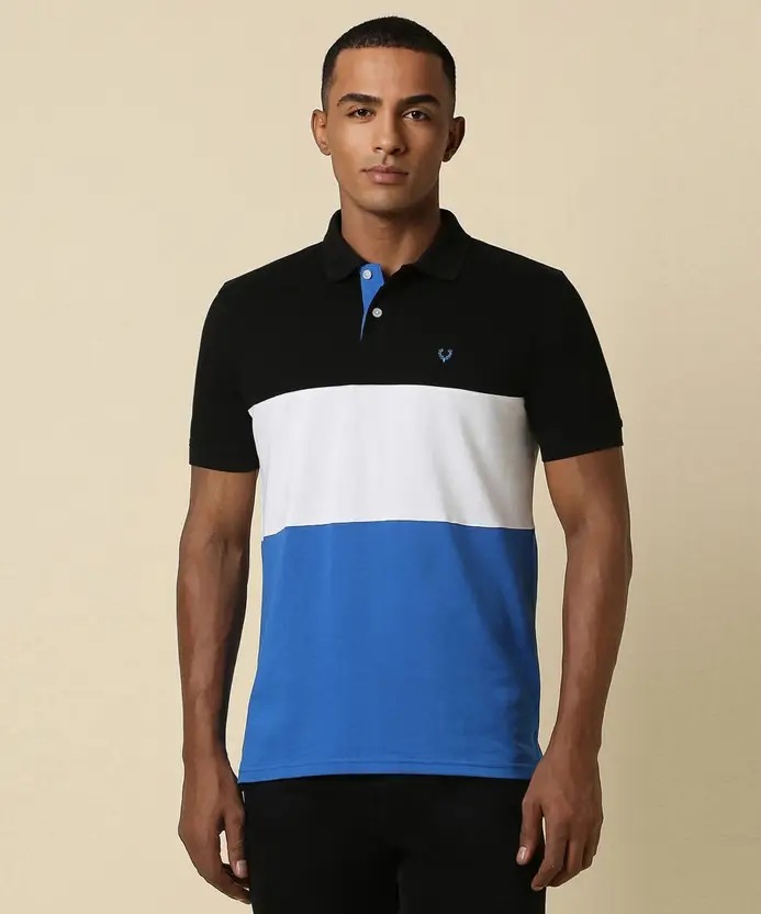 Men Colorblock Polo Neck Cotton Blend Multicolor T-Shirt