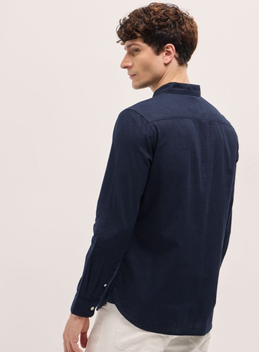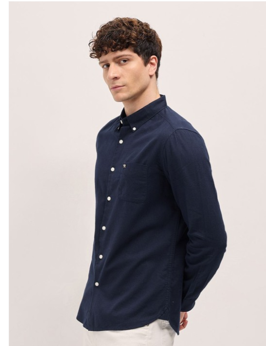 Navy blue opaque casual shirt for men