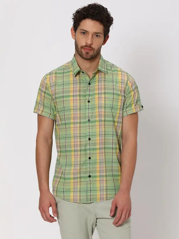 Men Slim Fit Checkered Spread Collar Casual Shirt