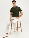 Men Self Design Polo Neck Pure Cotton Green T-Shirt