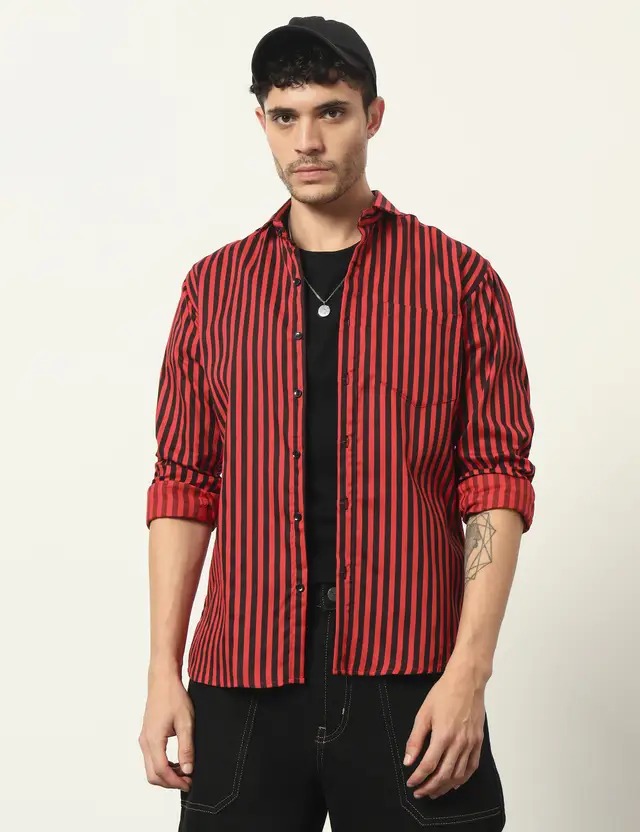 Men Regular Fit Striped Spread Collar Casual Shirt