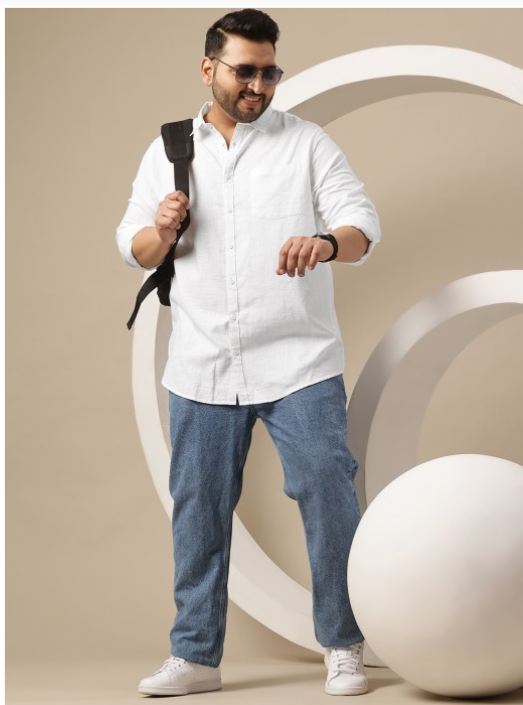 White solid opaque Casual shirt ,has a spread collar, button placket, 1 patch pocket, long regular sleeves, curved hem