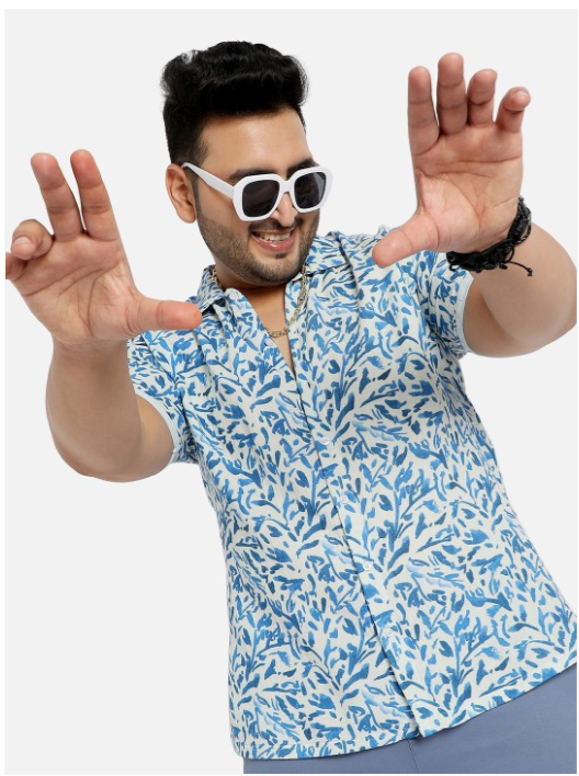 White & blue floral printed opaque casual shirt ,has a spread collar, button placket, long regular sleeves, curved hem