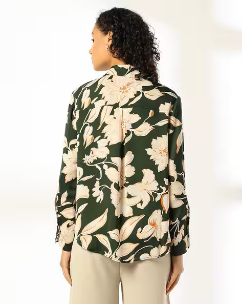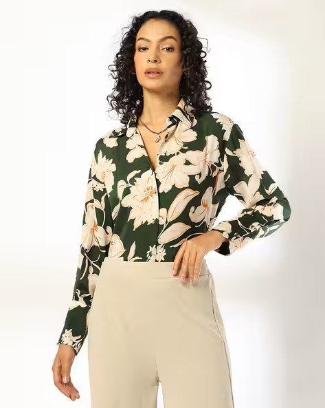 Women Floral Print Relaxed Fit Satin Shirt