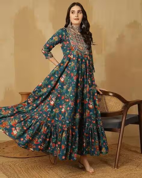 Women Embroidered Flared Kurta