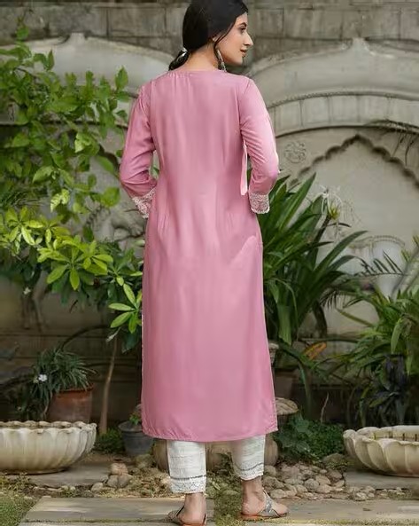 Floral Print Round-Neck Straight Kurta