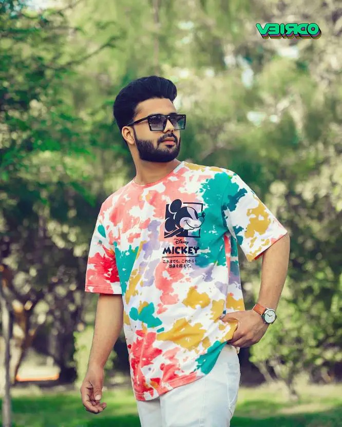Disney MICKEY MOUSE Men Tie & Dye Round Neck Pure Cotton Multicolor T-Shirt