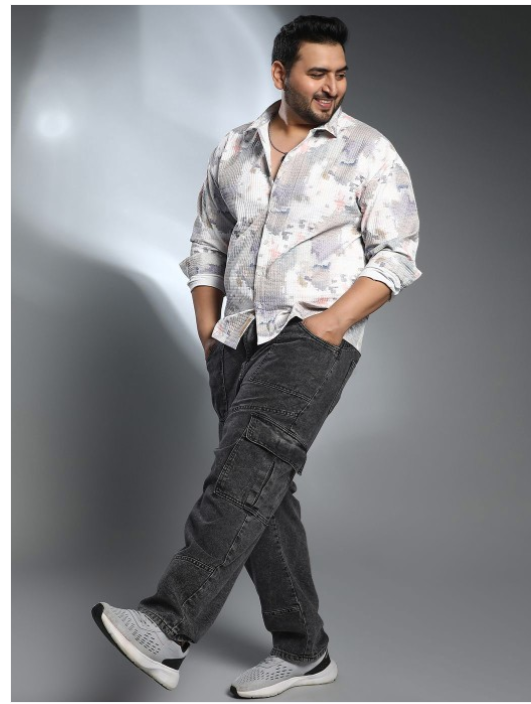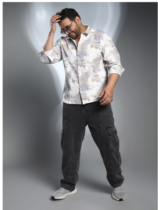 White & grey abstract printed opaque casual shirt ,has a spread collar, button placket, long regular sleeves, curved hem