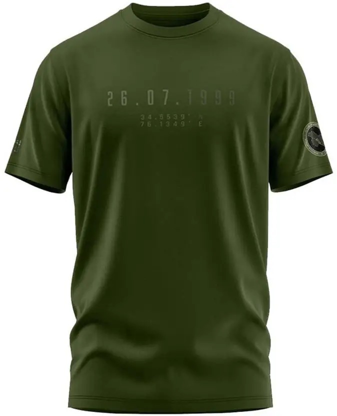 Men Graphic Print Round Neck Pure Cotton Dark Green T-Shirt