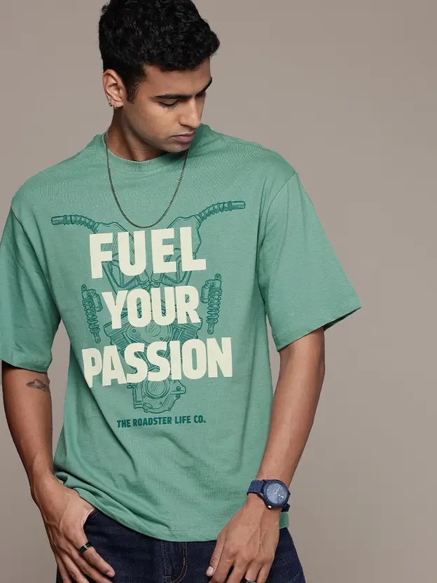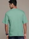 Men Printed Round Neck Pure Cotton Green T-Shirt