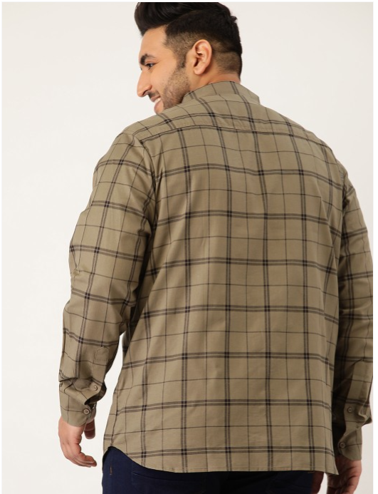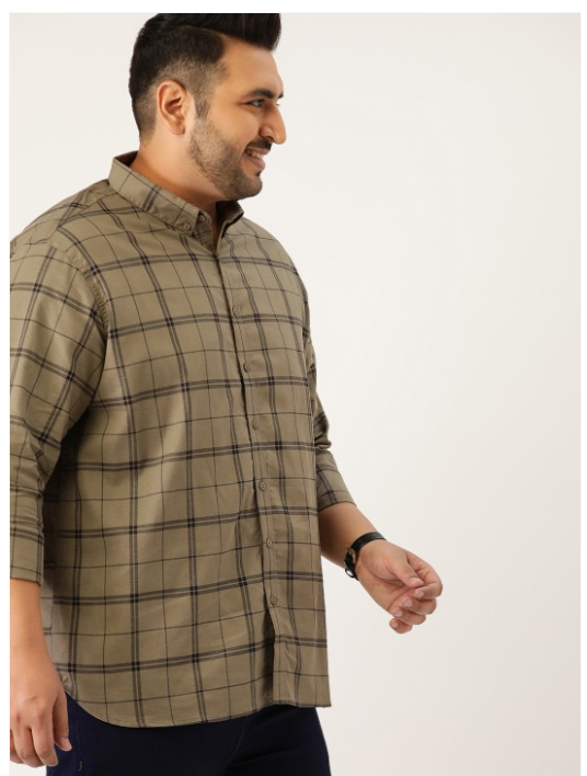 Men Plus Size Beige Tartan Checks Checked Casual Shirt
