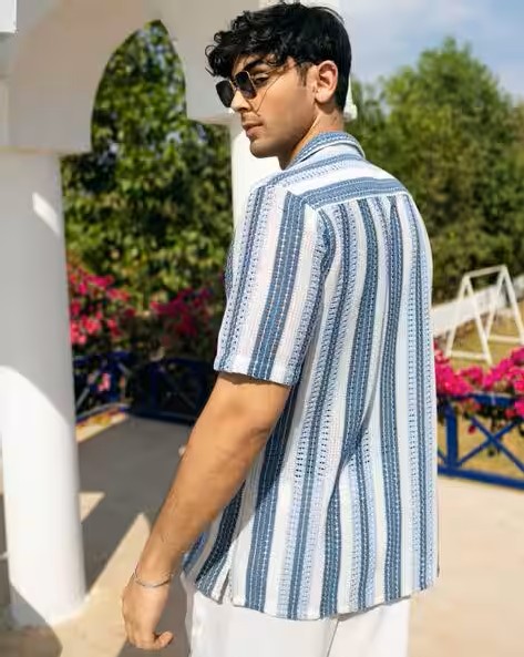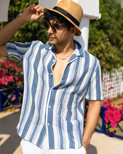 Men Crochet Compression Fit Cotton Shirt