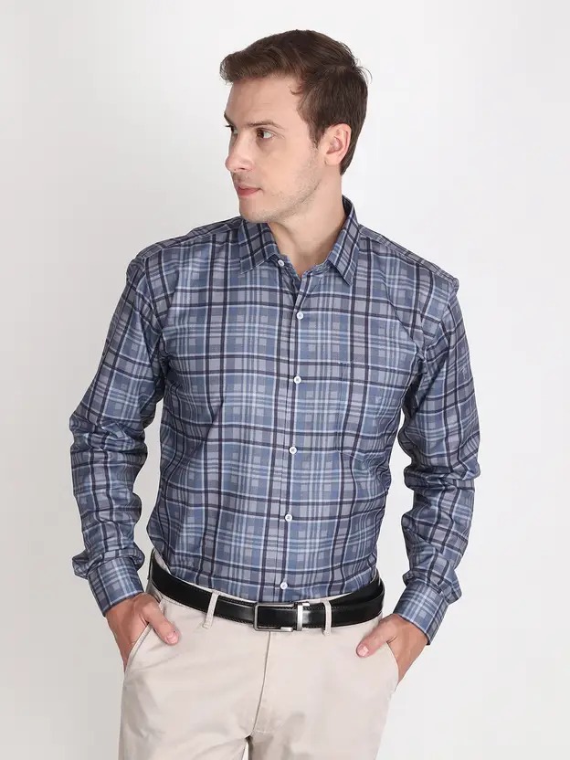 Men Regular Fit Checkered Spread Collar Formal Shirt