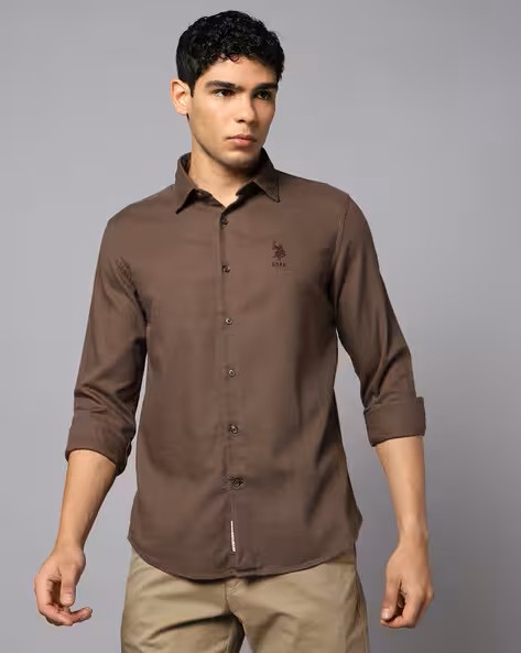 Men Regular Fit Shirt with Logo Embroidery