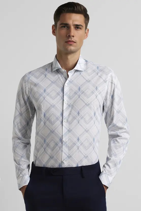 Men Super Slim Fit Printed Spread Collar Formal Shirt