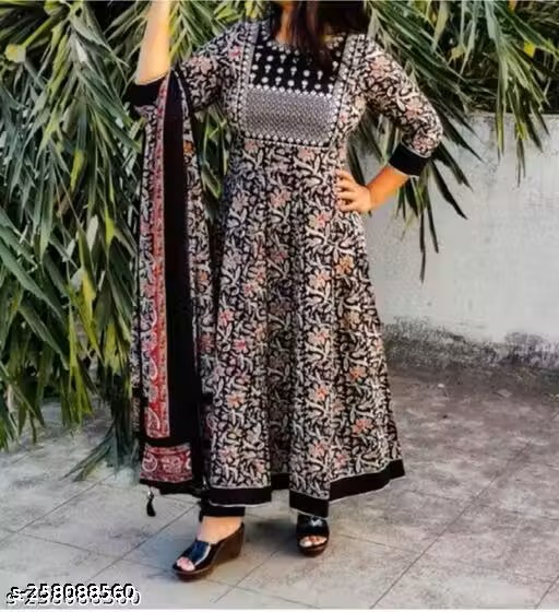 Name : Elegance Redefined: SK International Premium Pure Rayon Anarkali Kurti Set with Mulmul Dupatta
