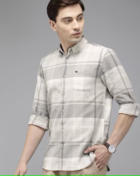 Men Checked Slim Fit Shirt with Patch Pocket