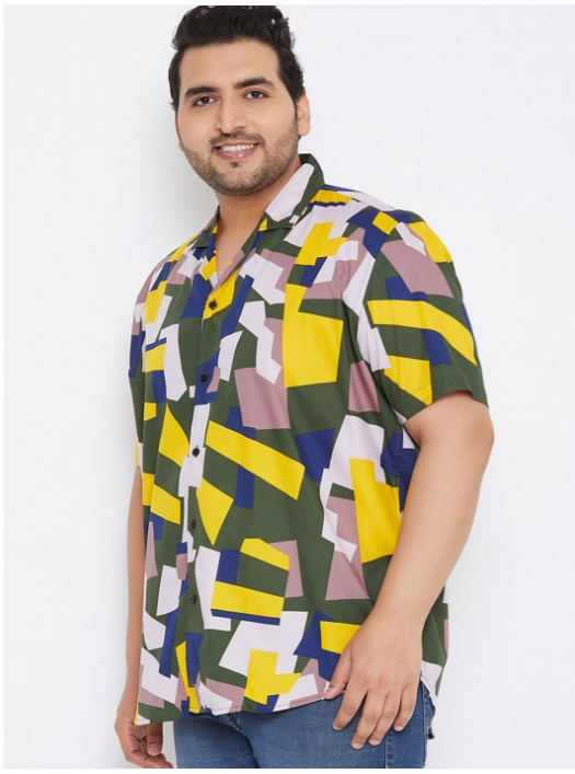 Multicoloured geometric printed opaque Casual shirt ,has a spread collar, button placket, short regular sleeves, curved hem