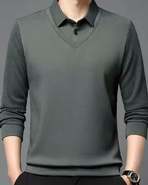 Men Striped Regular Fit T-Shirt with Full Sleeves