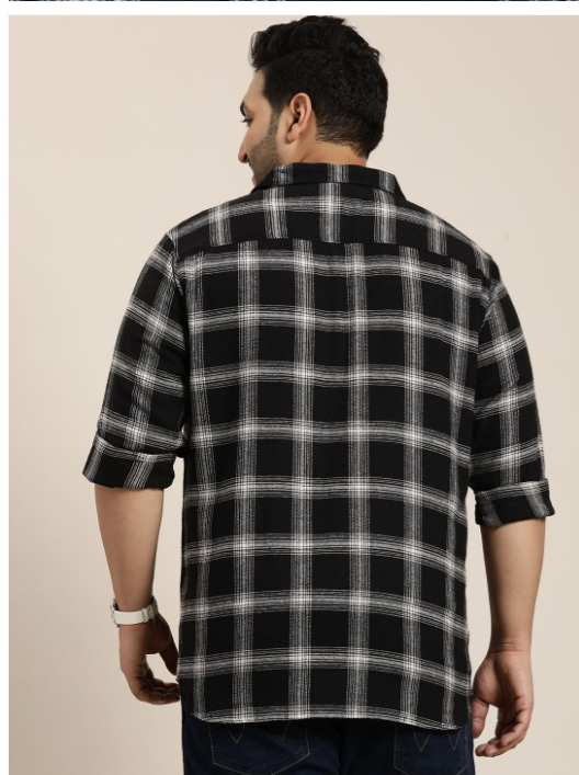 Black other checks checked opaque Casual shirt ,has a spread collar, button placket, 1 patch pocket, long regular sleeves, curved hem