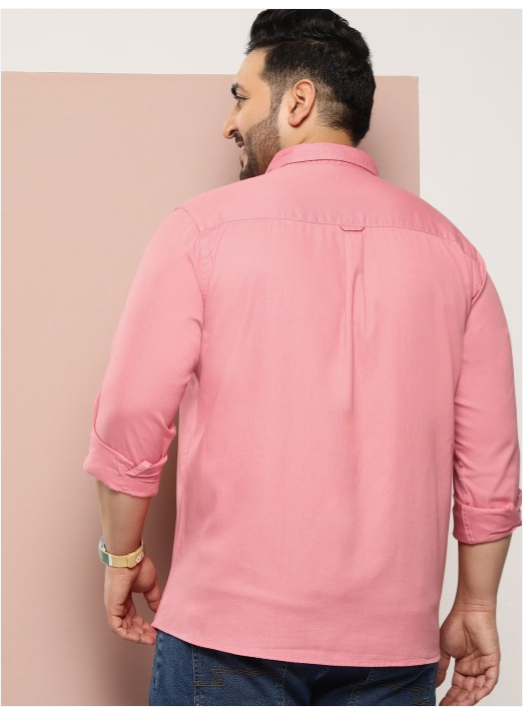 Pink solid opaque Casual shirt ,has a button-down collar, button placket, 1 patch pocket, long regular sleeves, curved hem