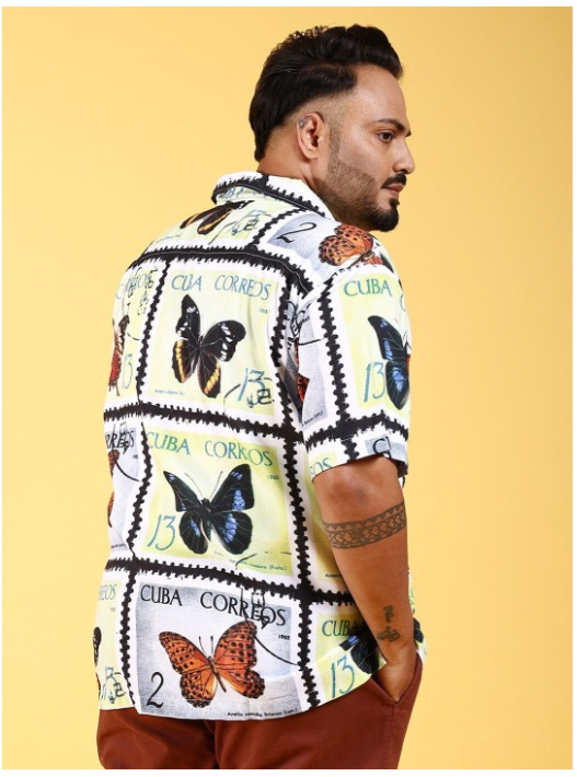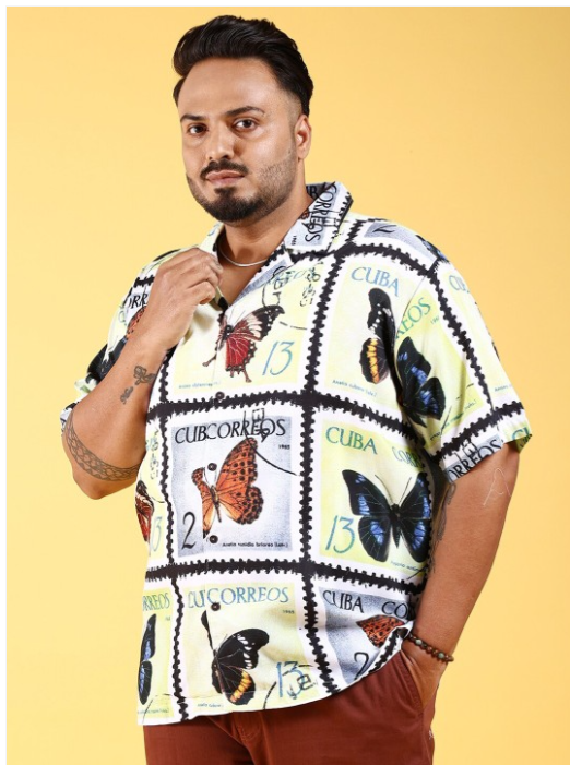 Plus Size Conversational Printed Cuban Collar Casual Shirt