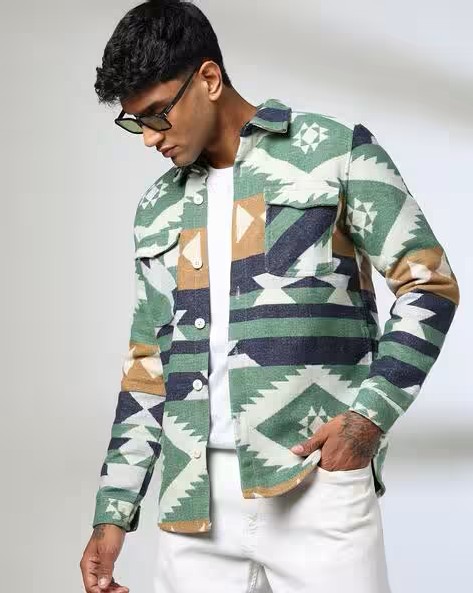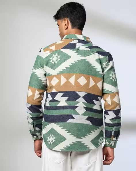 Men Geometric Pattern Slim Fit Shacket