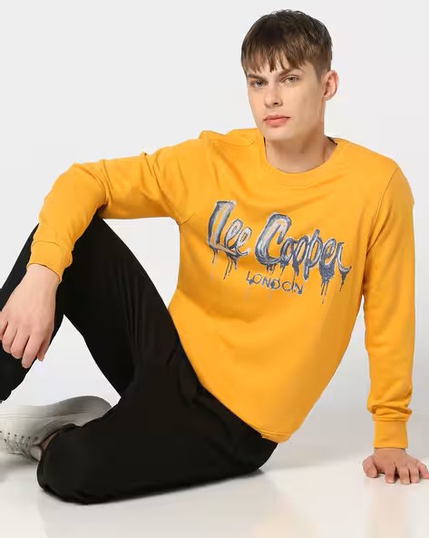 Men Brand Print Regular Fit Crew-Neck Sweatshirt