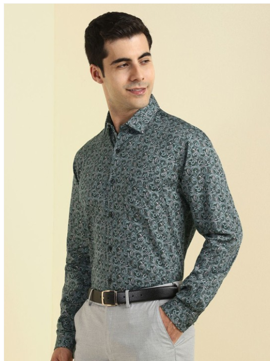 Green floral printed opaque Formal shirt ,has a spread collar, button placket, na pocket, long regular sleeves, curved hem