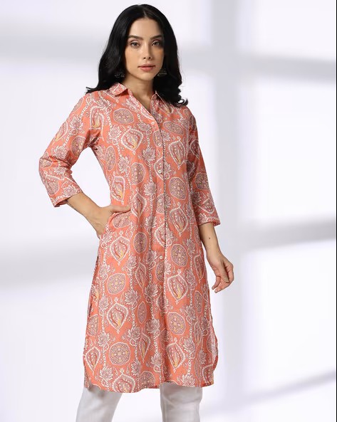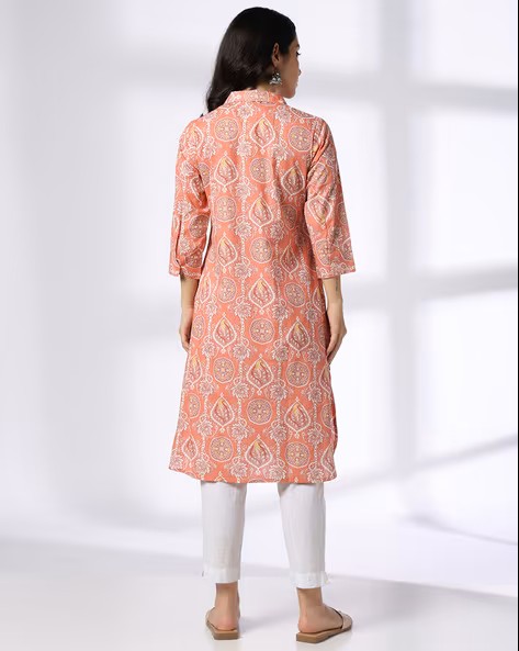 Women Floral Print Straight Kurta with Insert Pocket