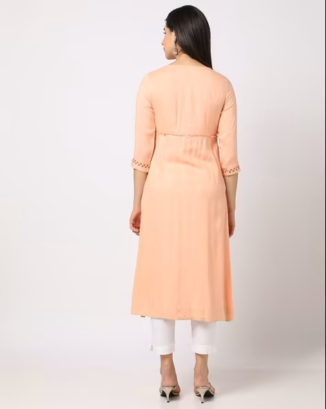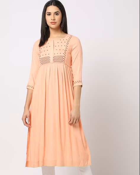 Straight Kurta with Embroidered Yoke