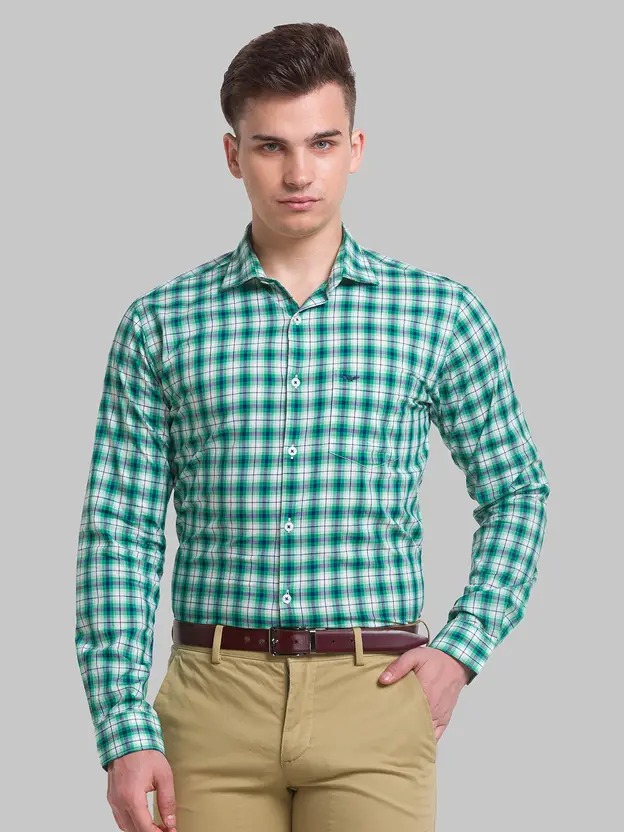Men Slim Fit Checkered Spread Collar Formal Shirt