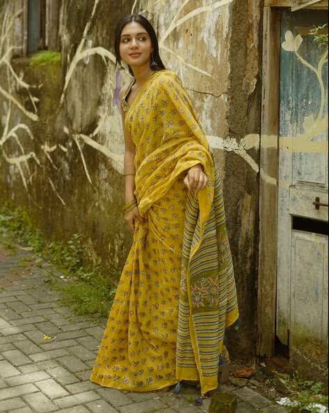 Comes with an unstitched blouse piece of 80cm attached to the saree and features a beautiful Zari woven border.