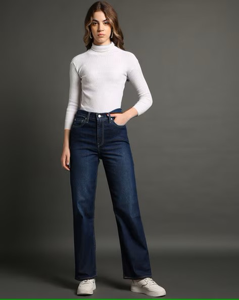 - With a figure-flattering high-rise silhouette and plenty of adaptable pockets, levi's improves denim style these ribcage straight blue jeans feature button & zip at the front and a flattering waistband. The straight fit style is just right for going out or staying in.