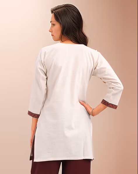 Features detailed hand embroidery enhancing the floral design for a rich ethnic charm.