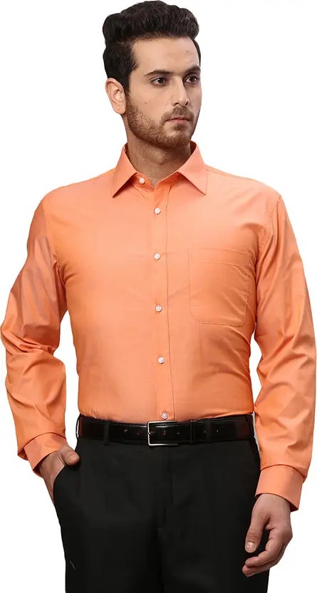 Men Slim Fit Solid Cut Away Collar Formal Shirt