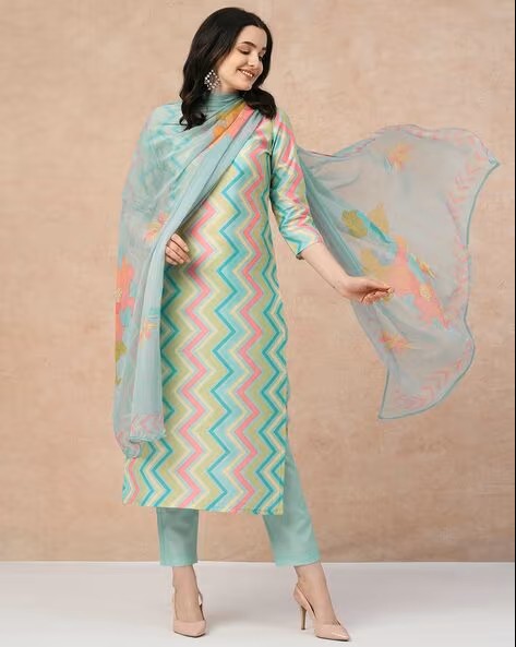Women Geometric Print Straight Kurta & Pants with Dupatta