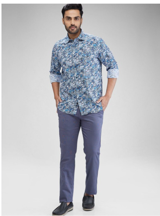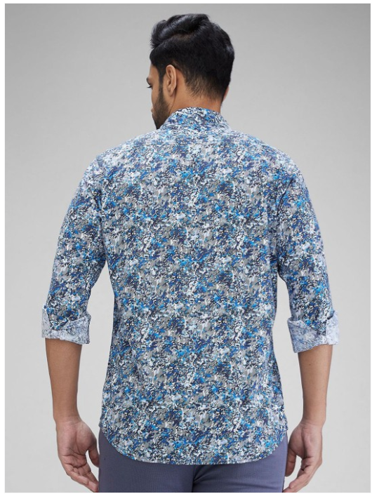 Blue floral printed opaque Casual shirt ,has a spread collar, button placket, na pocket, long regular sleeves, curved hem