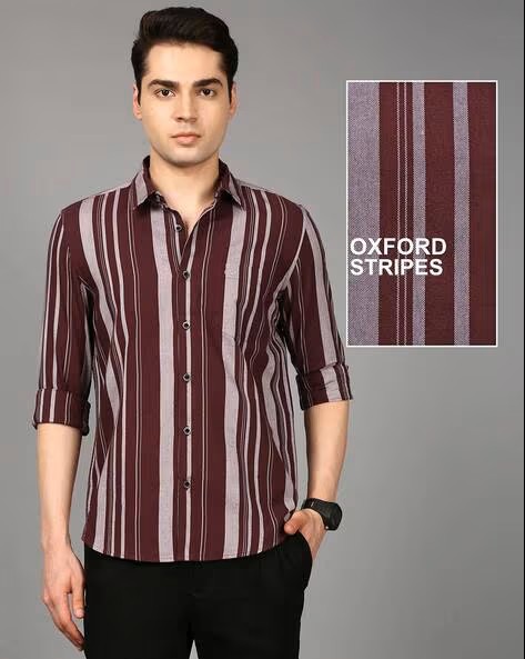 Men Striped Slim Fit Shirt with Patch Pocket