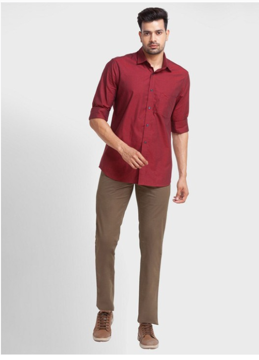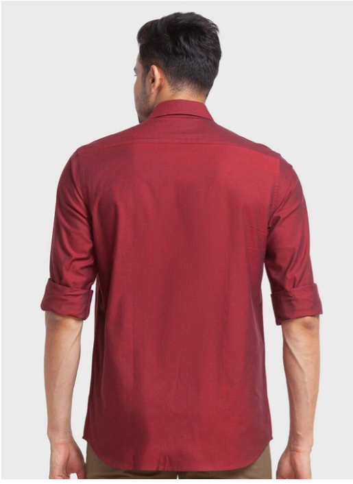 Red solid opaque Casual shirt ,has a spread collar, button placket, long regular sleeves, curved hem