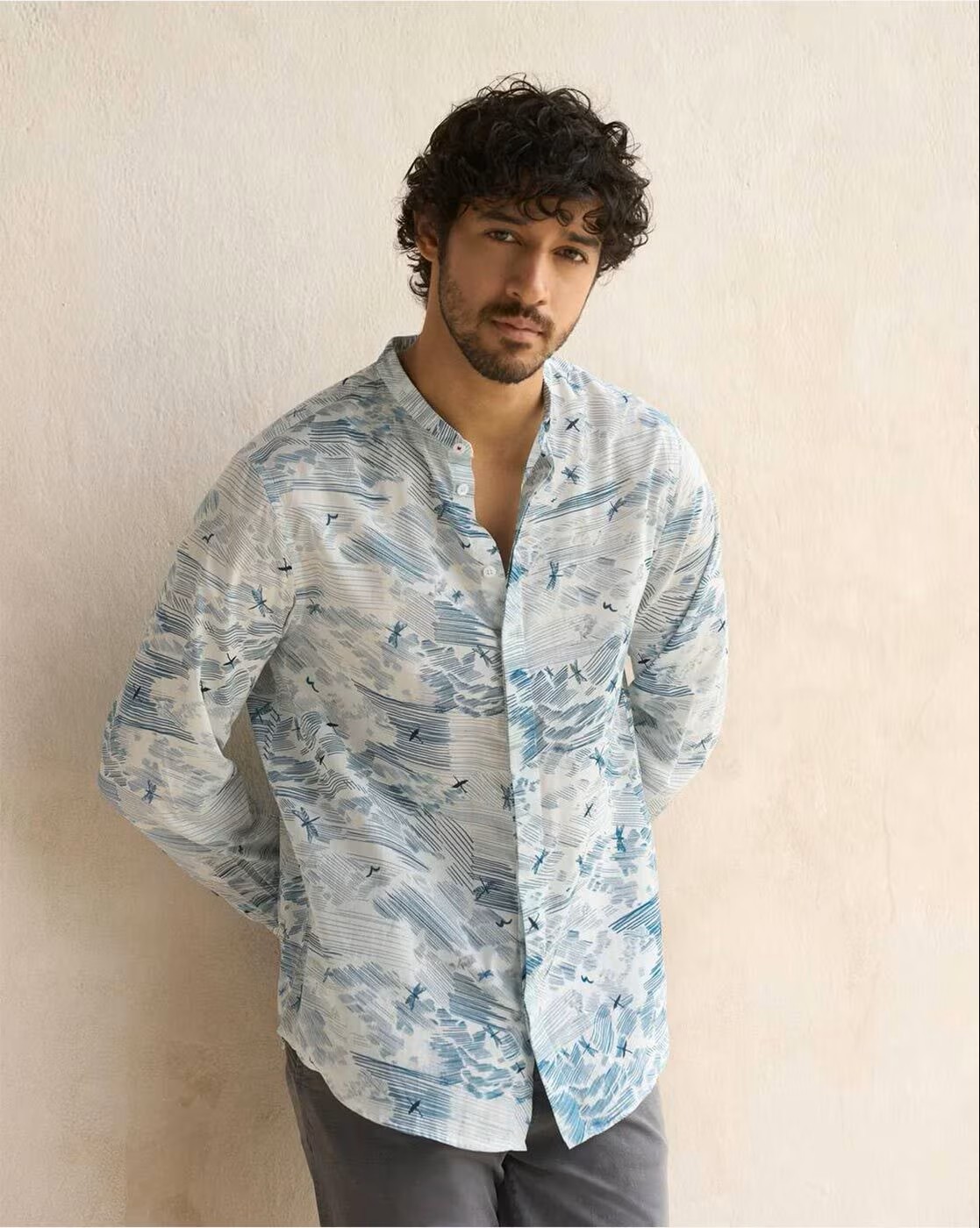 Men Shirt with Band Collar