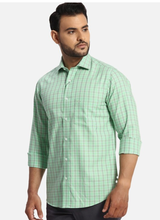 Green other checks checked opaque Casual shirt ,has a spread collar, button placket, na pocket, long regular sleeves, curved hem